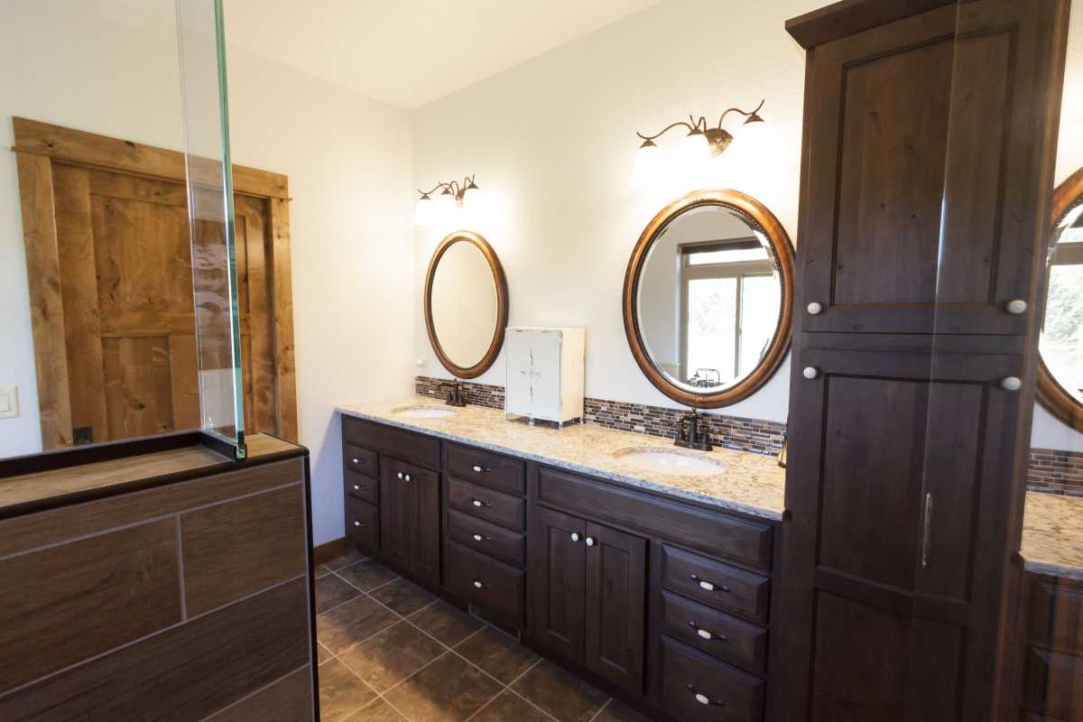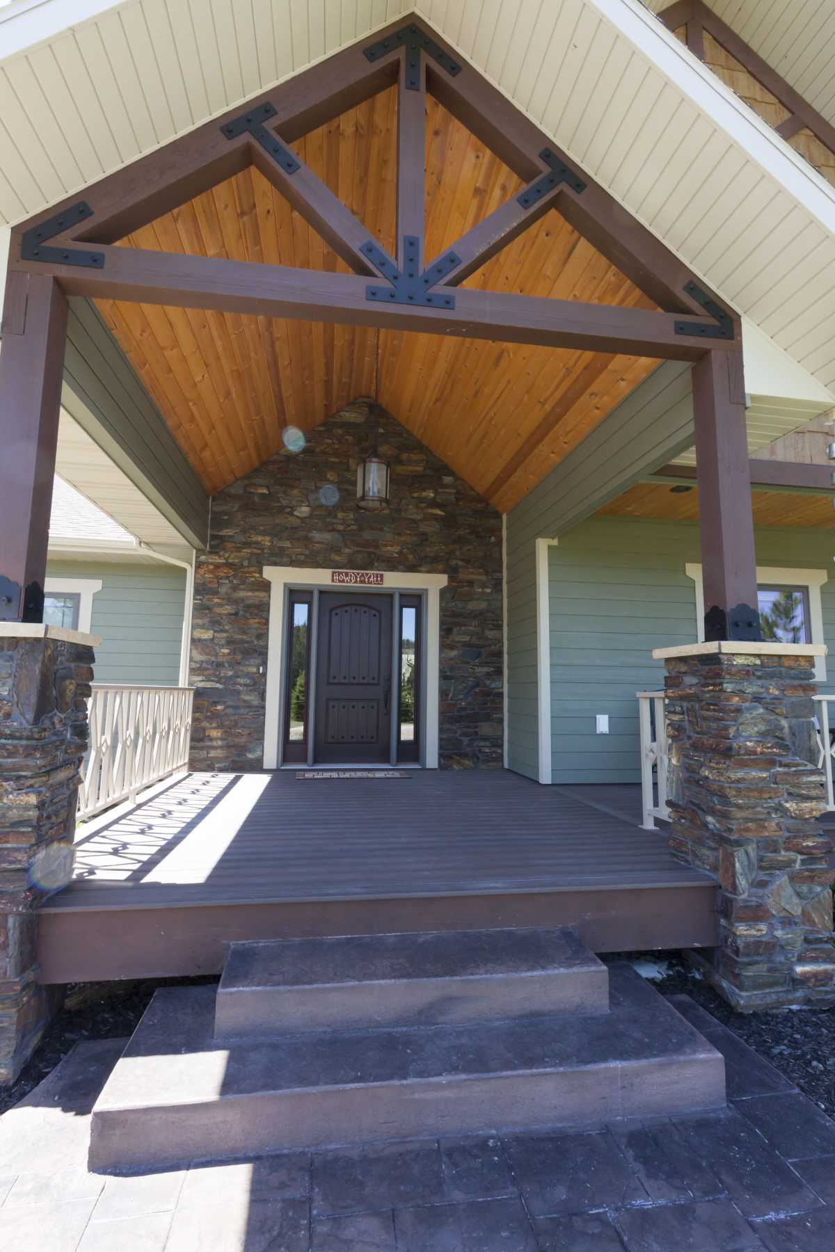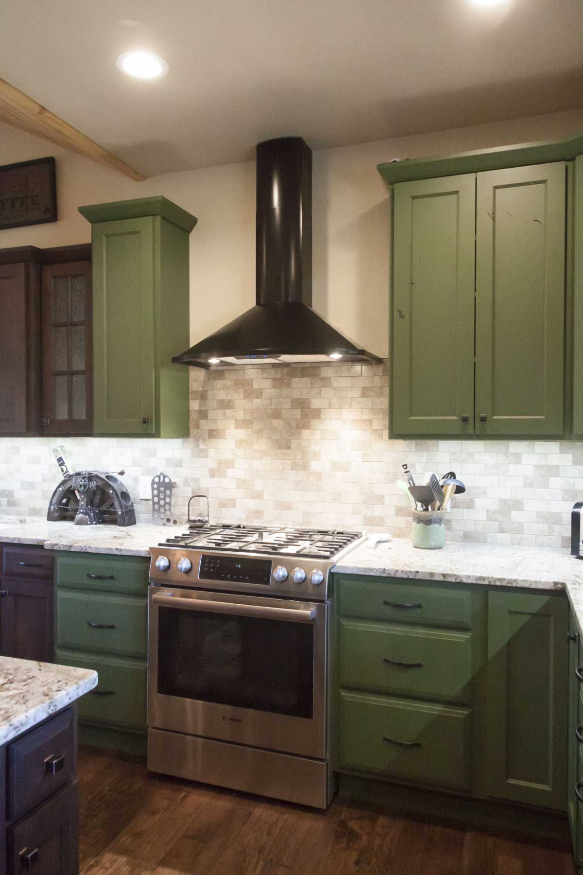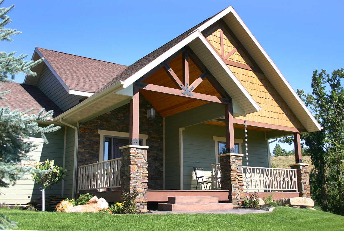 This vacation home is a beautiful blend of rustic and traditional and is set next to a tranquil country pond in the rolling Black Hills. The homeowner wisely paired various wood species and shades of stain to its exterior with warm green traditional colors that complimented and created a soothing, stylish craftsman cottage. The interior includes a welcoming open-concept kitchen and living area complete with green cabinetry and a stone fireplace. The master bedroom has its own luxurious bath complete with an old fashion claw foot tub and stunning tiled shower.